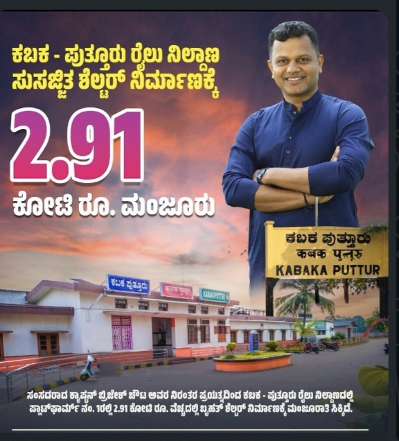 ಕಬಕ – ಪುತ್ತೂರು ರೈಲು ನಿಲ್ದಾಣದ ಅಭಿವೃದ್ಧಿ ಕುರಿತು ಸಂಸದರು 2024ರ ನವೆಂಬರ್ನಲ್ಲಿ ನೈಋತ್ಯ ರೈಲ್ವೆಯ ಜನರಲ್ ಮ್ಯಾನೇಜರ್ ಅವರಿಗೆ ಪತ್ರ ಬರೆದು ಶೆಲ್ಟರ್ ವಿಸ್ತರಣೆಗೆ ಆಗ್ರಹಿಸಿದ್ದರು. ಇದೀಗ ಸ್ಥಳ ಗುರುತಿಸುವ ಪ್ರಕ್ರಿಯೆ ಪೂರ್ಣಗೊಂಡಿದ್ದು, ಶೀಘ್ರದಲ್ಲೇ ಕಾಮಗಾರಿ ಆರಂಭವಾಗಲಿದೆ ಎಂದು ಅವರು ಪ್ರಕಟಣೆಯಲ್ಲಿ ತಿಳಿಸಿದ್ದಾರೆ.
