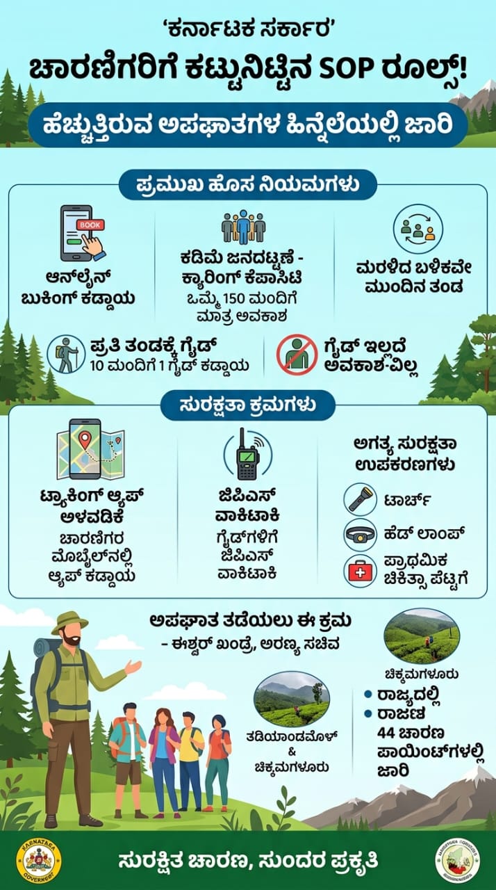 ರಾಜ್ಯದ ಒಟ್ಟು 44 ಚಾರಣ ಪಾಯಿಂಟ್ಗಳಲ್ಲಿ ಈ ಹೊಸ ನಿಯಮಗಳು ತಕ್ಷಣದಿಂದ ಜಾರಿಗೆ ಬರಲಿವೆ.